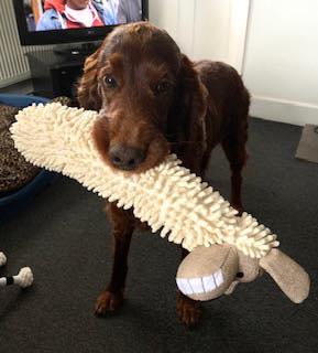 Kylie. Here’s a lucky lucky girl. Landed on her feet after having to be rehomed at the age of six, due to owner having been taken seriously ill. She’s a bouncy girl, enjoys toys love, walks, attention , not to mention food! Had a lockdown waistline like most of us.